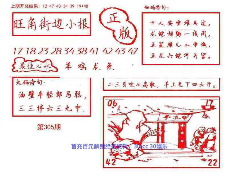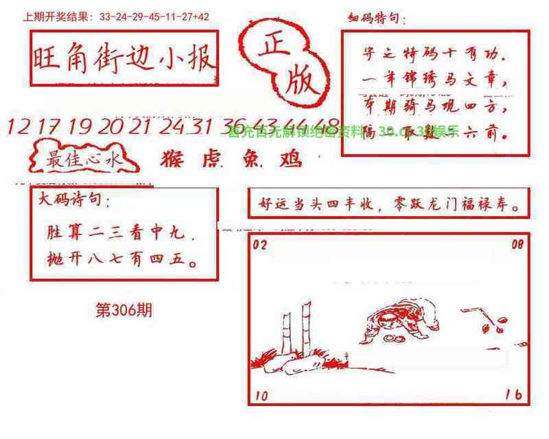 | 306期 | 猪 | 蓝波单 | 3尾 | 开牛17 |